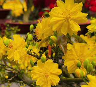 Dành cho mấy anh chị thích vẻ đẹp tự nhiên, xum xuê. Cây có tán thông tròn trịa, nụ chi chít từ gốc tới ngọn. Cây này mà đặt giữa sảnh là thấy không khí Tết tràn trề luôn.